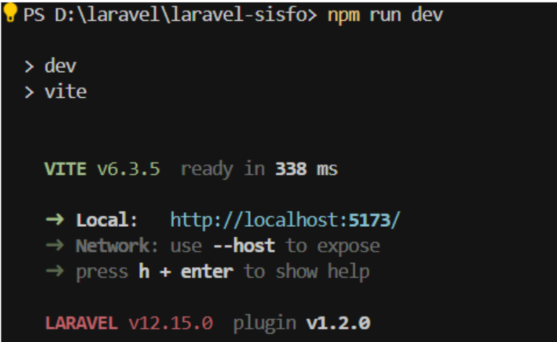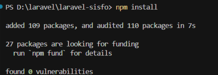 Pastikan Anda berada di direktori tujuan sebelum menjalankan proses instalasi agar struktur folder proyek tertata dengan baik. Instalasi dianggap berhasil apabila hasilnya tampak seperti berikut: