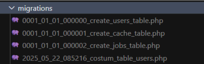 Setelah menjalankan perintah migrasi, buka folder database/migrations/ seperti pada gambar.