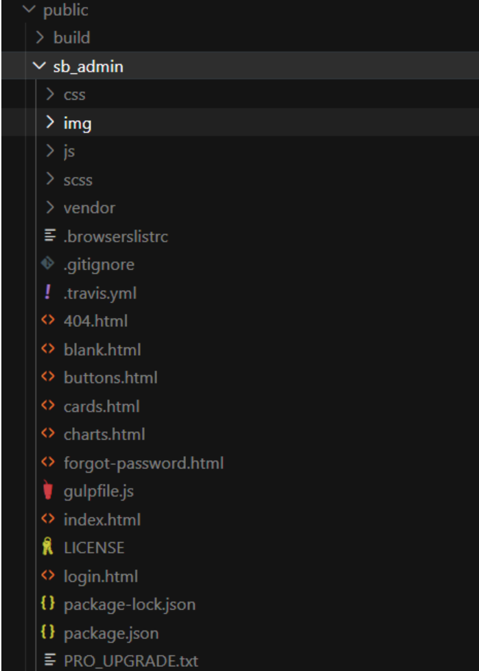 Setelah download, ekstrak filenya. Kemudian buat folder baru di dalam folder public pada project Laravel kamu dengan nama sb_admin. Selanjutnya, copy semua file dan folder aset dari template SB Admin 2 ke folder public/sb_admin yang sudah dibuat tadi.