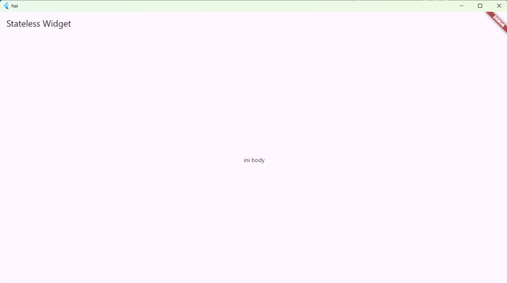 kemudian jalan kan pada terminal vscode dengan perintah flutter run lib/stateless.dart