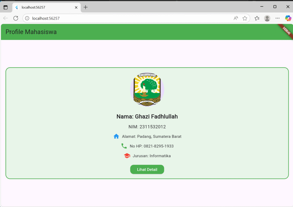 handphone, jurusan) dengan mengimplementasikan seluruh basic widget yang ada pada