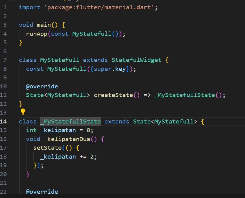 Buatlah kode berikut di file baru bernama statefull.dart