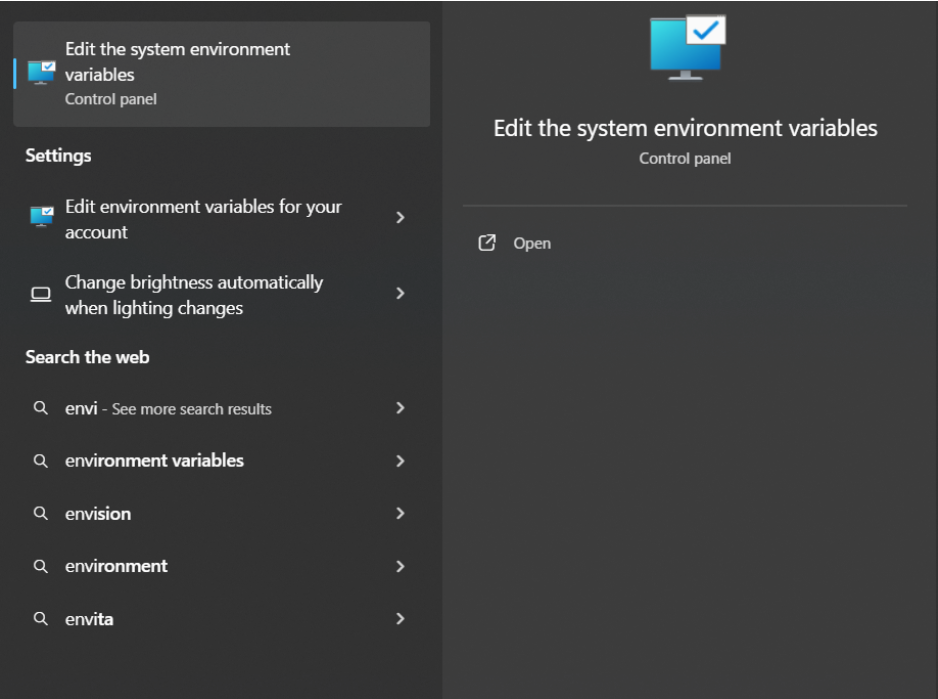 - Selanjutnya tambahkan pada PATH dengan cara mengetikkan environment pada pencarian