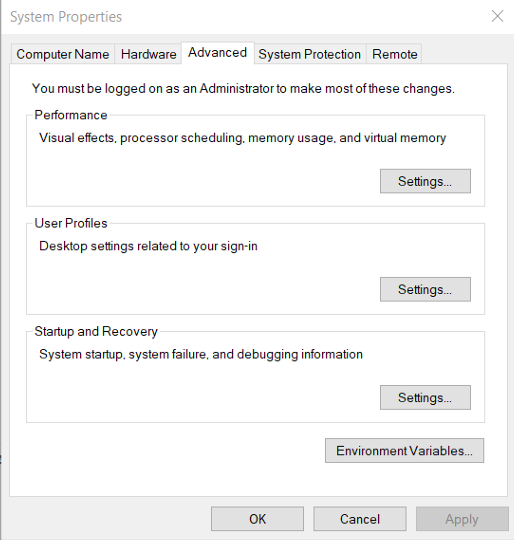 Klik Environment Variables