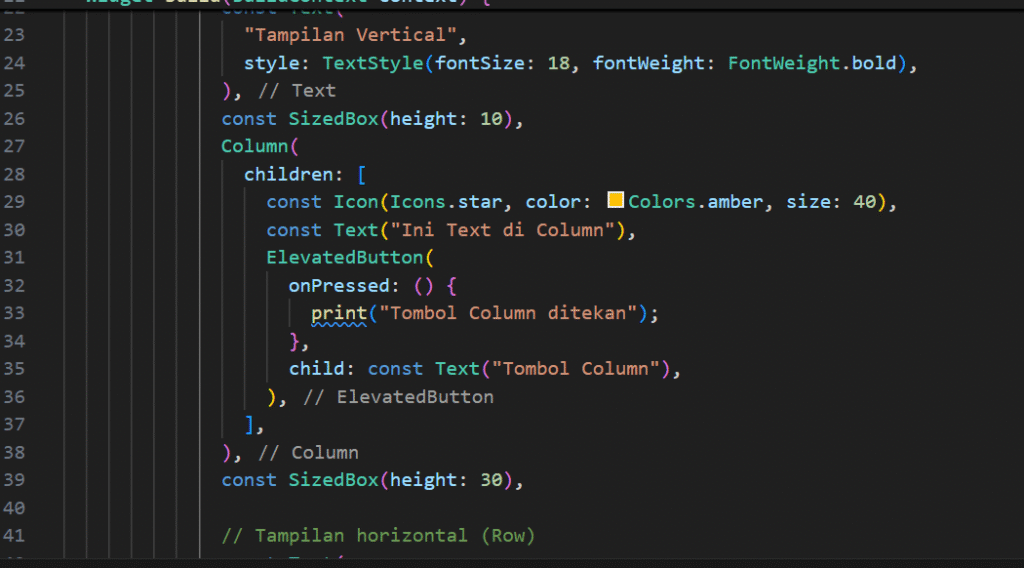 null, tombol akan otomatis nonaktif (disabled). - child → berisi widget yang ditampilkan di dalam tombol, umumnya berupa