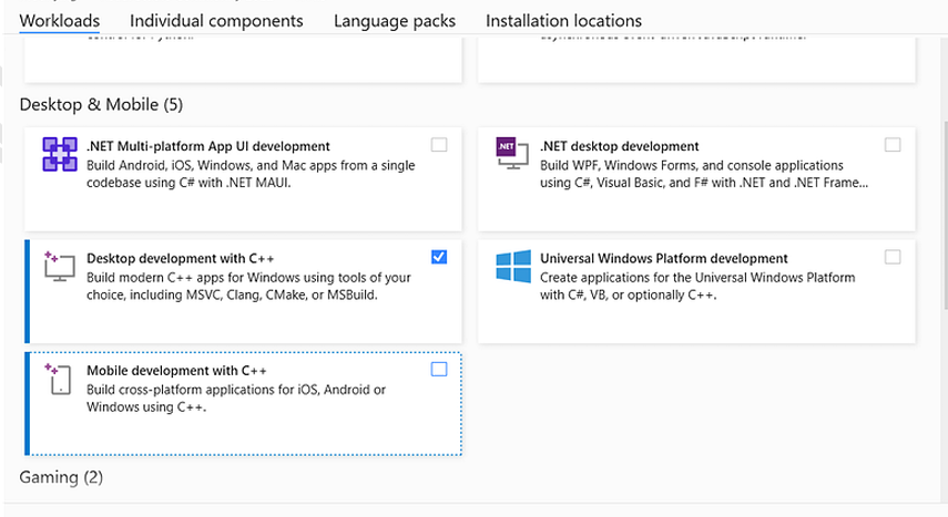 Kemudian, install Visual Studio dengan menginstal Desktop Development with C++